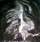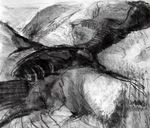 2005een oud boeket, kleurloos, 's nachts. Stukken van de bloemen. Houtskool, syberisch krijt en veel water
