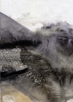 2005monotype op papier, aquarelverf en acryl. De abstracte afbeelding refereert aan natuur en landschap
