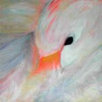 2002sneeuwgans (detail) in olieverf op doek. De opdracht op de academie was een heel licht schilderij te maken. Het zwarte oog was niet gepermitteerd, maar ik kon het niet missen.
